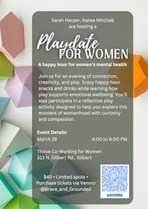 Join us for an evening of connection, creativity, and play. Enjoy happy-hour snacks and drinks while learning how play supports emotional wellbeing. You’ll also participate…